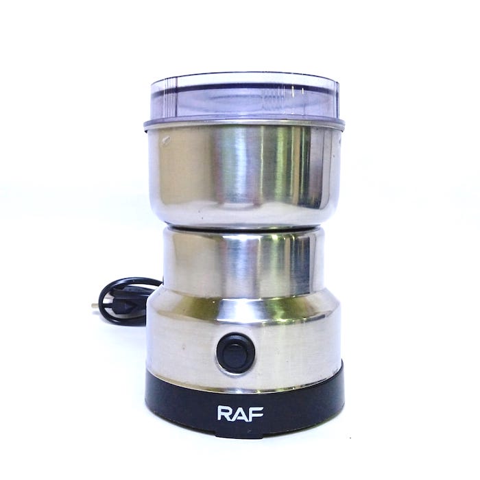 Molino de café eléctrico. Fácil de usar. Un solo botón para control de nivel de molido.
